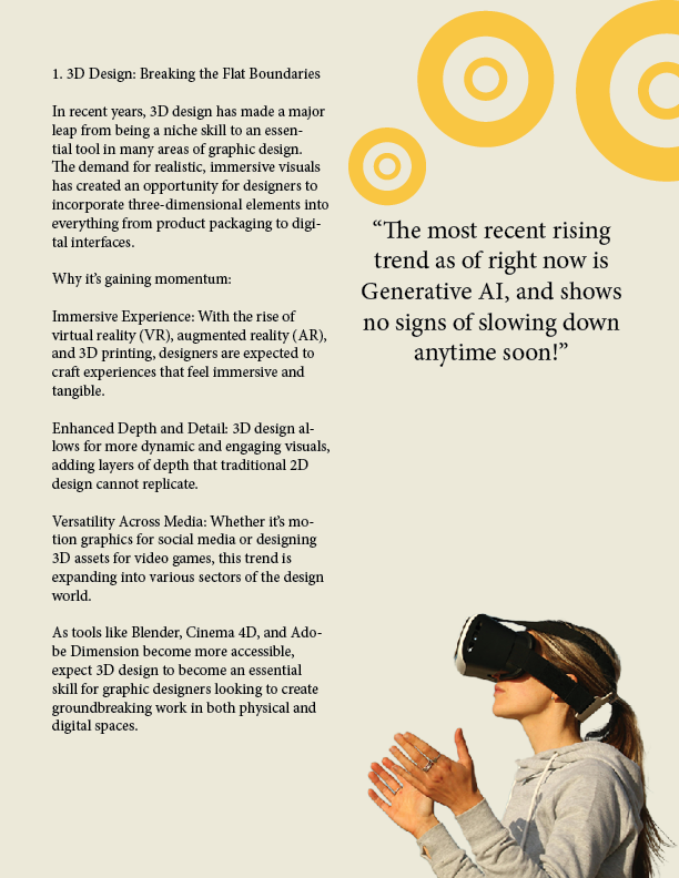 To produce a comprehensive resource that identifies and analyzes the most promising emerging trends, shaping the future of graphic design. As technology evolves at breakneck speeds, this publication serves as a guide for professionals to maintain relevance and stand out in an increasingly competitive global field.